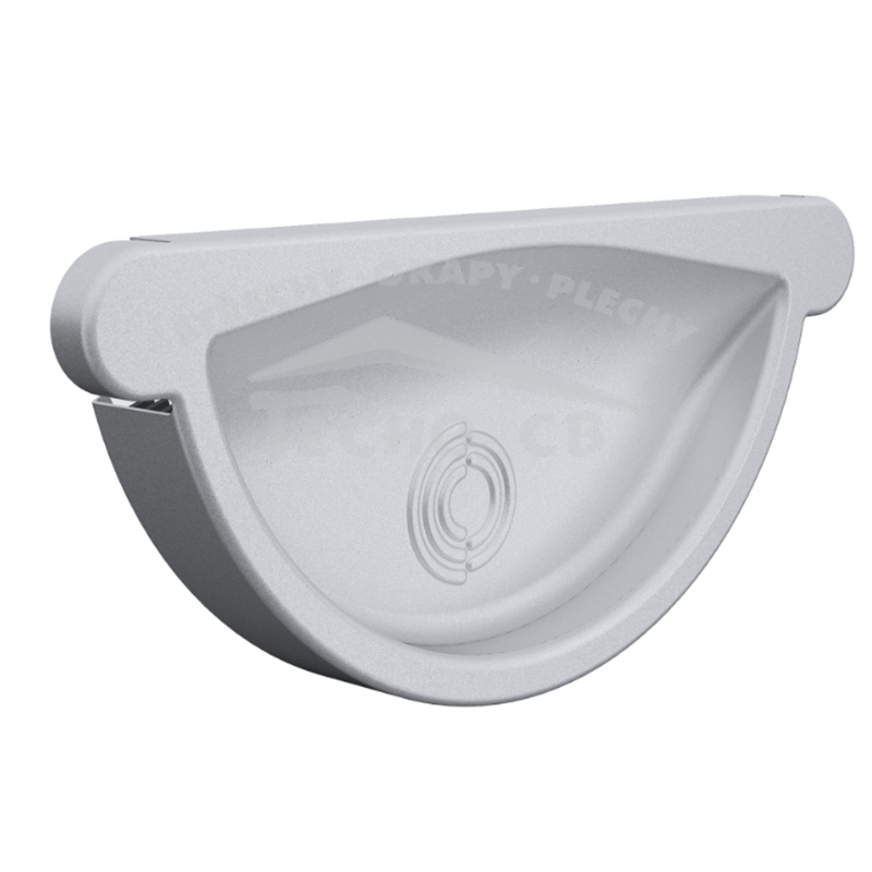 Žlabové naklepávací čelo s těsněním EPDM. Tento nový typ se liší v několika ohledech. Zásadní je ještě jednoduší montáž a velmi dobrá těsnost a pevnost spoje. Čelo je univerzální a lze jej osadit na pravou i levou stranu žlabu.