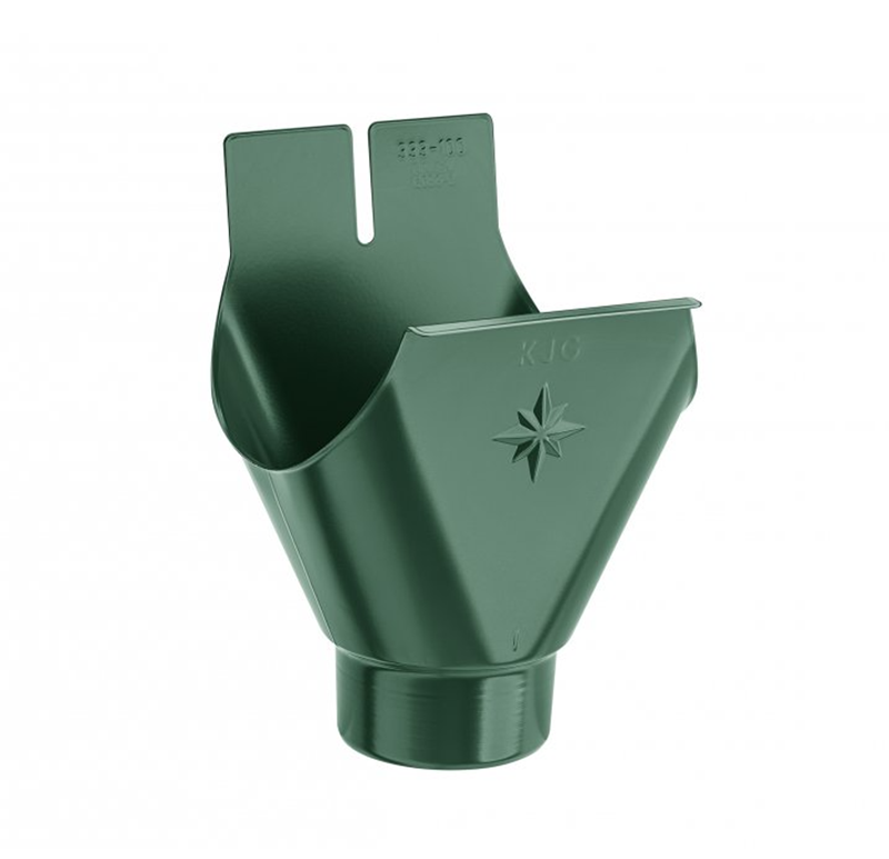 Klempířský prvek KJG vyrobený z barveného/lakovaného pozinku, který slouží pro propojení okapových žlabů a okapových svodů.