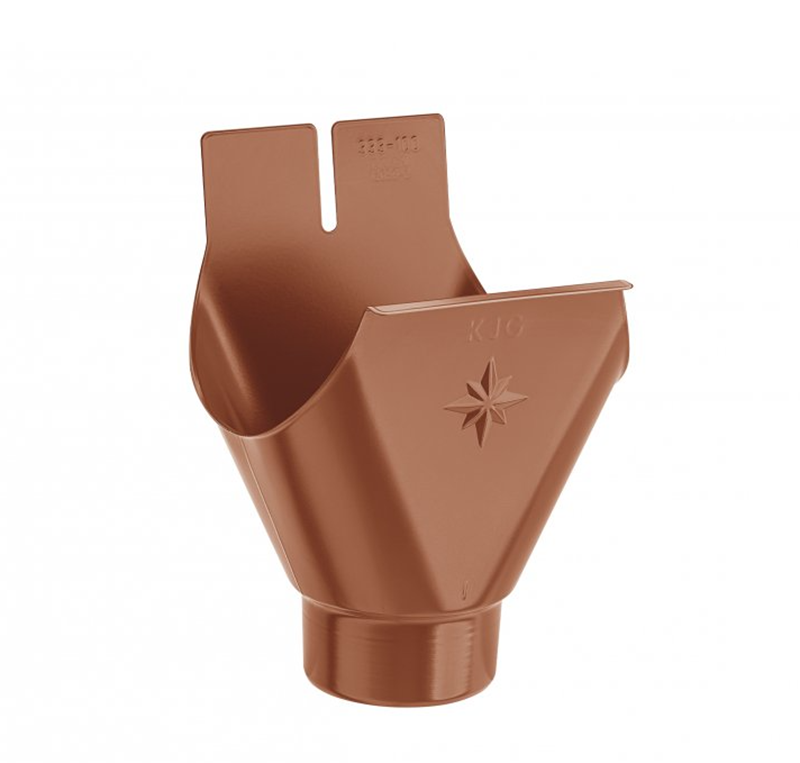 Klempířský prvek KJG vyrobený z barveného/lakovaného pozinku, který slouží pro propojení okapových žlabů a okapových svodů.