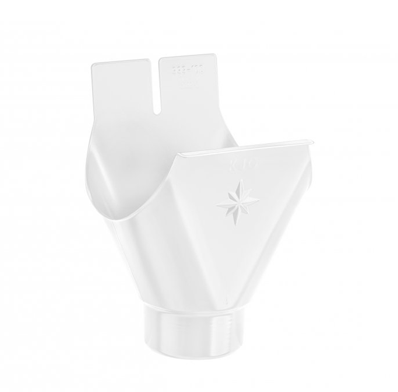 Klempířský prvek KJG vyrobený z barveného/lakovaného pozinku, který slouží pro propojení okapových žlabů a okapových svodů.