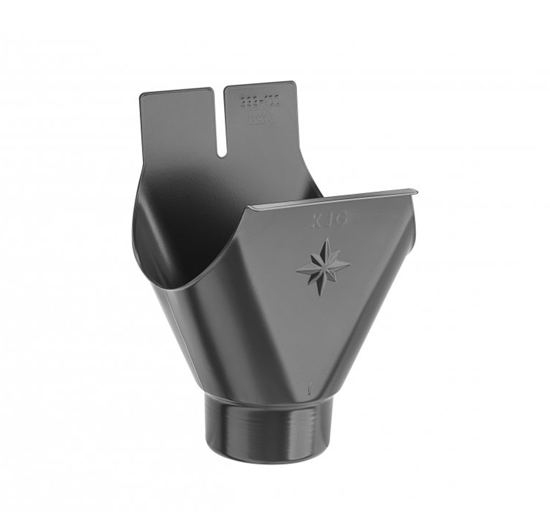 Klempířský prvek KJG vyrobený z barveného/lakovaného pozinku, který slouží pro propojení okapových žlabů a okapových svodů.