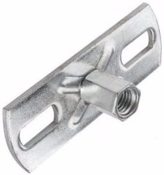 Montážní deska s matkou M10 slouží k uchycení objímky svodu do plechové stěny.