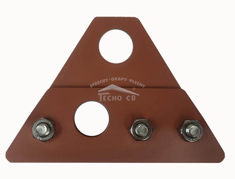 Držák trubkového sněholamu pro dvě trubky slouží k uchycení trubkového zachycovače sněhu. Držák je vhodný pro plechové falcované krytiny. Umisťuje se co nejblíže krokvi. Doporučená osová vzdálenost jednotlivých prvků je max. 90 cm.