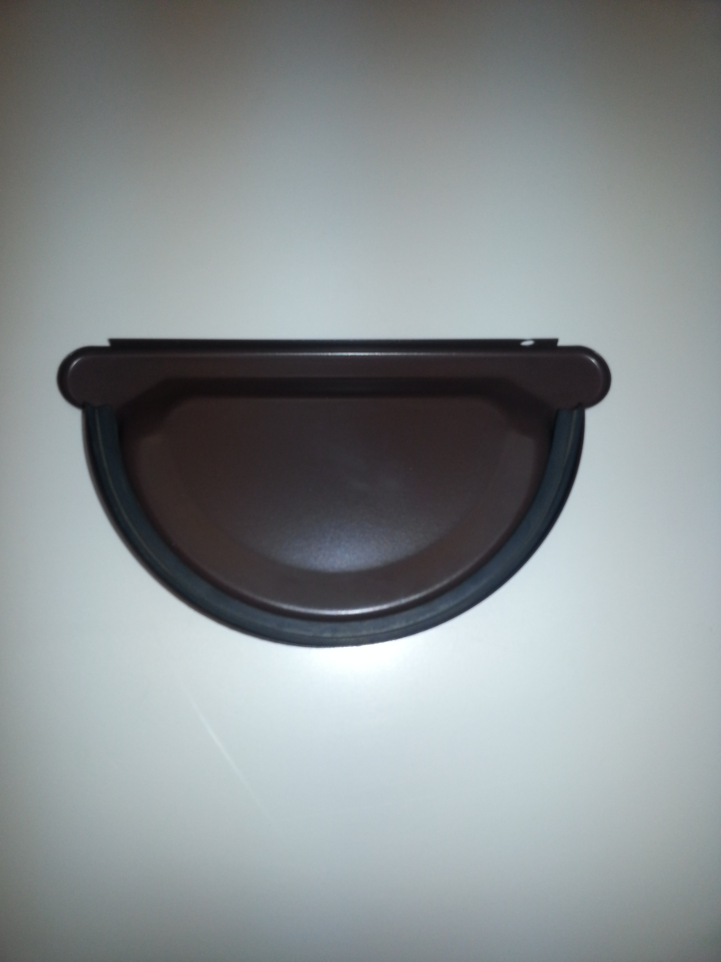 Klempířský prvek z pozinkovaného barveného / lakovaného plechu, sloužící k uzavření okapů / žlabů z levé a pravé strany.